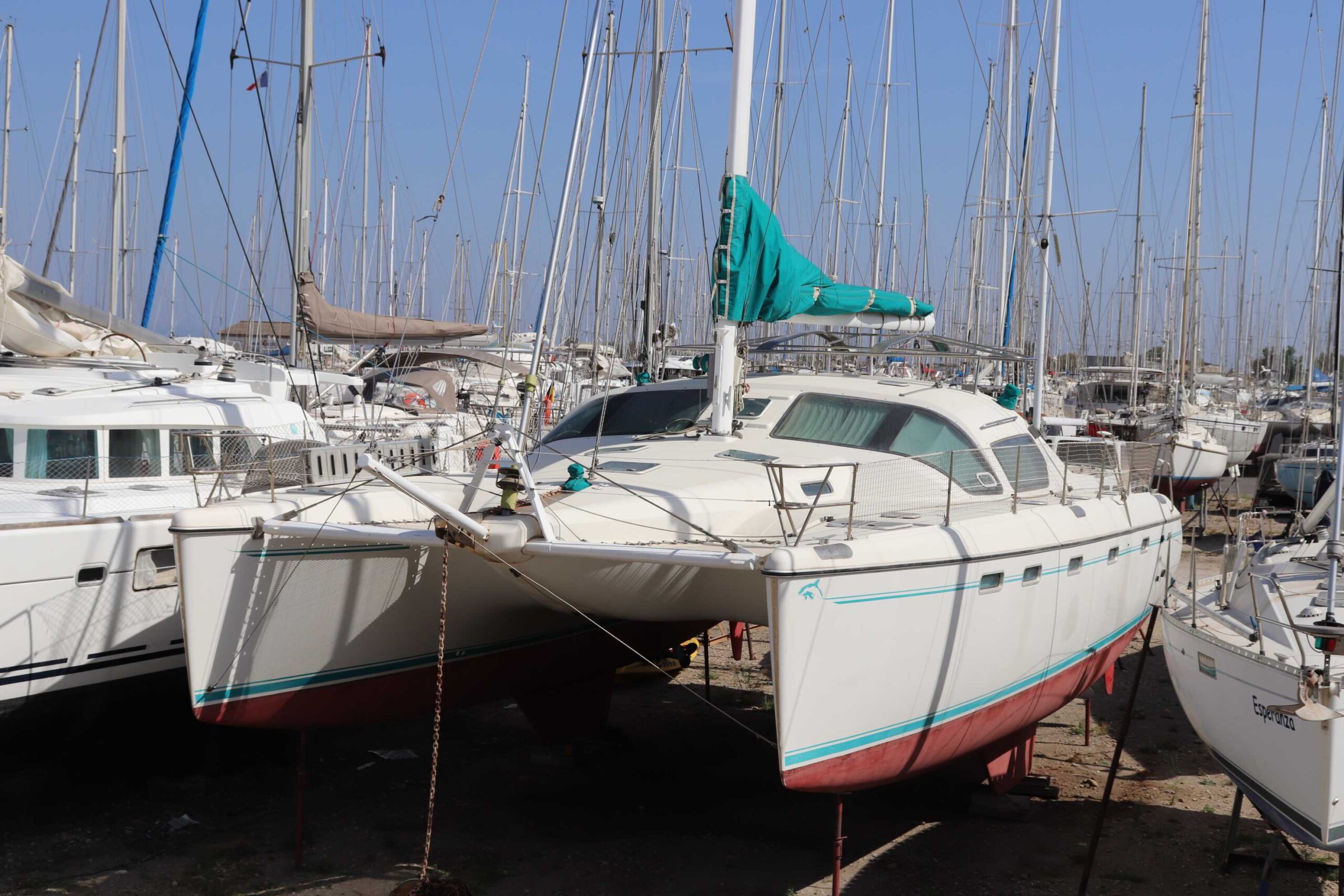 Catamaran d'occasion Privilège 465 du chantier Alliura Marine en vente à Port Navy Service 13230 Port St Louis du Rhone. Il s'agit d'un catamaran de propriétaire, toujours hiverné à terre à Port Navy Service. Le port à sec est une excellente solution pour tous bateau, voilier, catamaran, yacht, bateau à moteur, trimaran.
