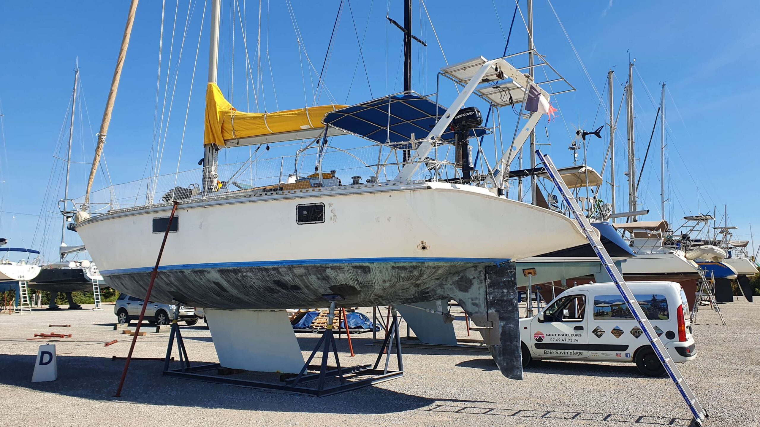 Guindeau électrique Revisé 2022 et reconditionné Pompe de cale Coupe-orins Survie BOMBARD BIP OFFSHORE révisée ok 2025 Béquilles d’echouement Hivernage A sec Peinture de coque Gel coat Antifouling Semi-dégradable Ancres secondaires : +1 plate de 15kg Passes coques 2021 et vannes 2021 Presse étoupe 2021 et bagues de safran 2021 Hublot de coques neuf, et les plexi pour les ouvrants sont à bord |