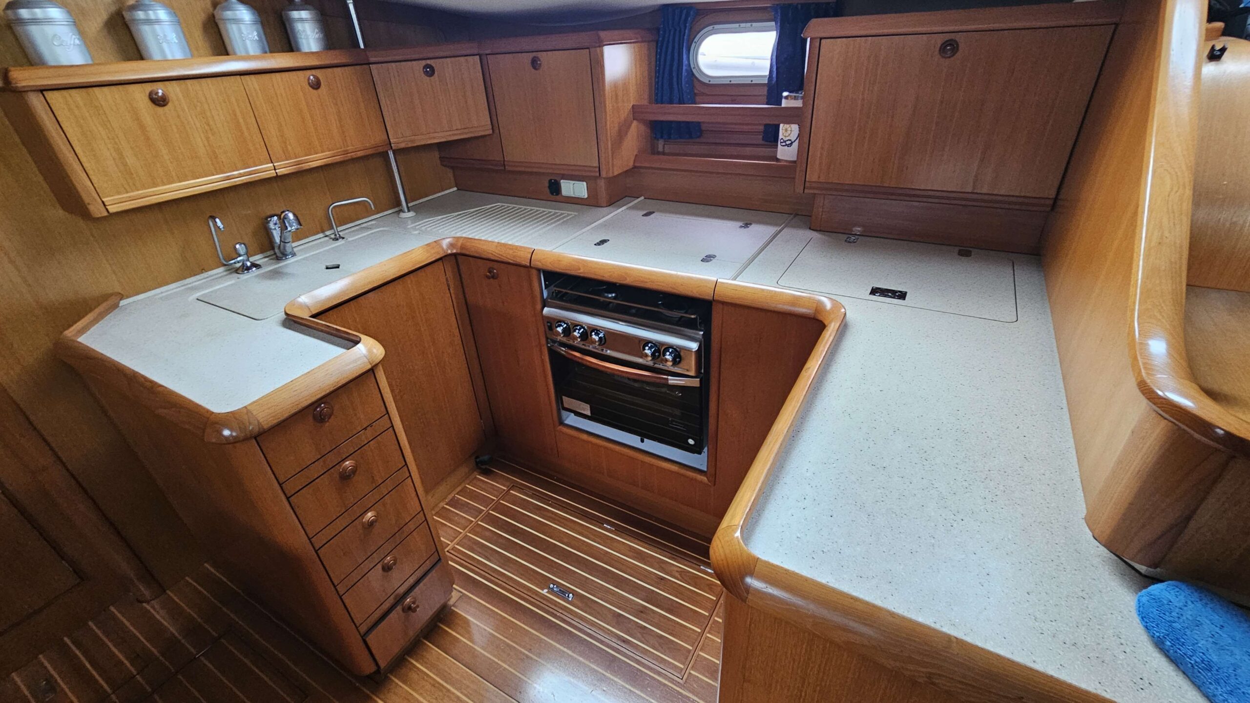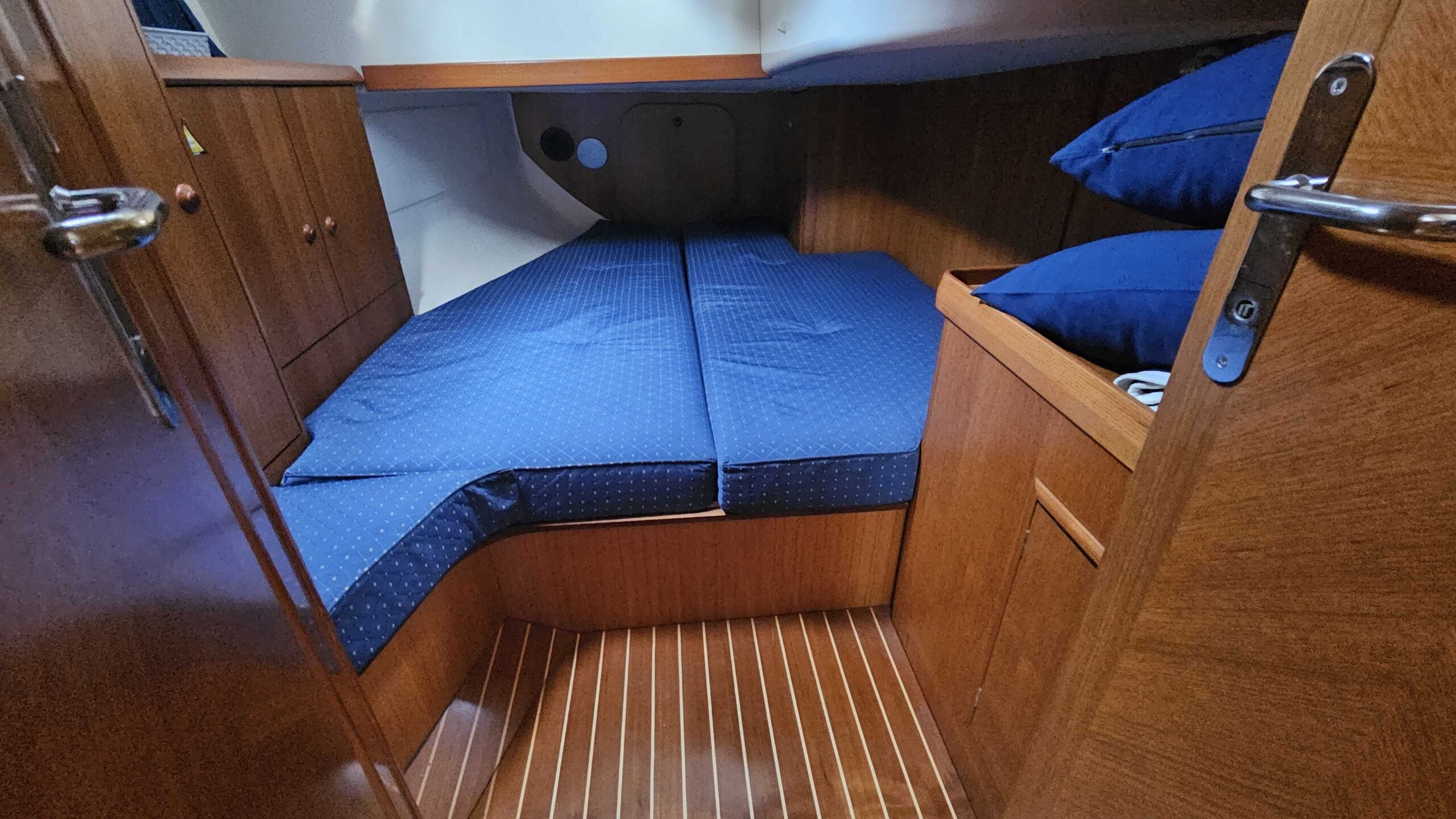 Passerelle Cockpit teck Pont teck Plateforme de bain Echelle de bain Douchette de cockpit Table de cockpit Eclairage de cockpit Bain de soleil avant Coussins de cockpit Bimini top Capote de descente Taud de mouillage Taud de soleil |