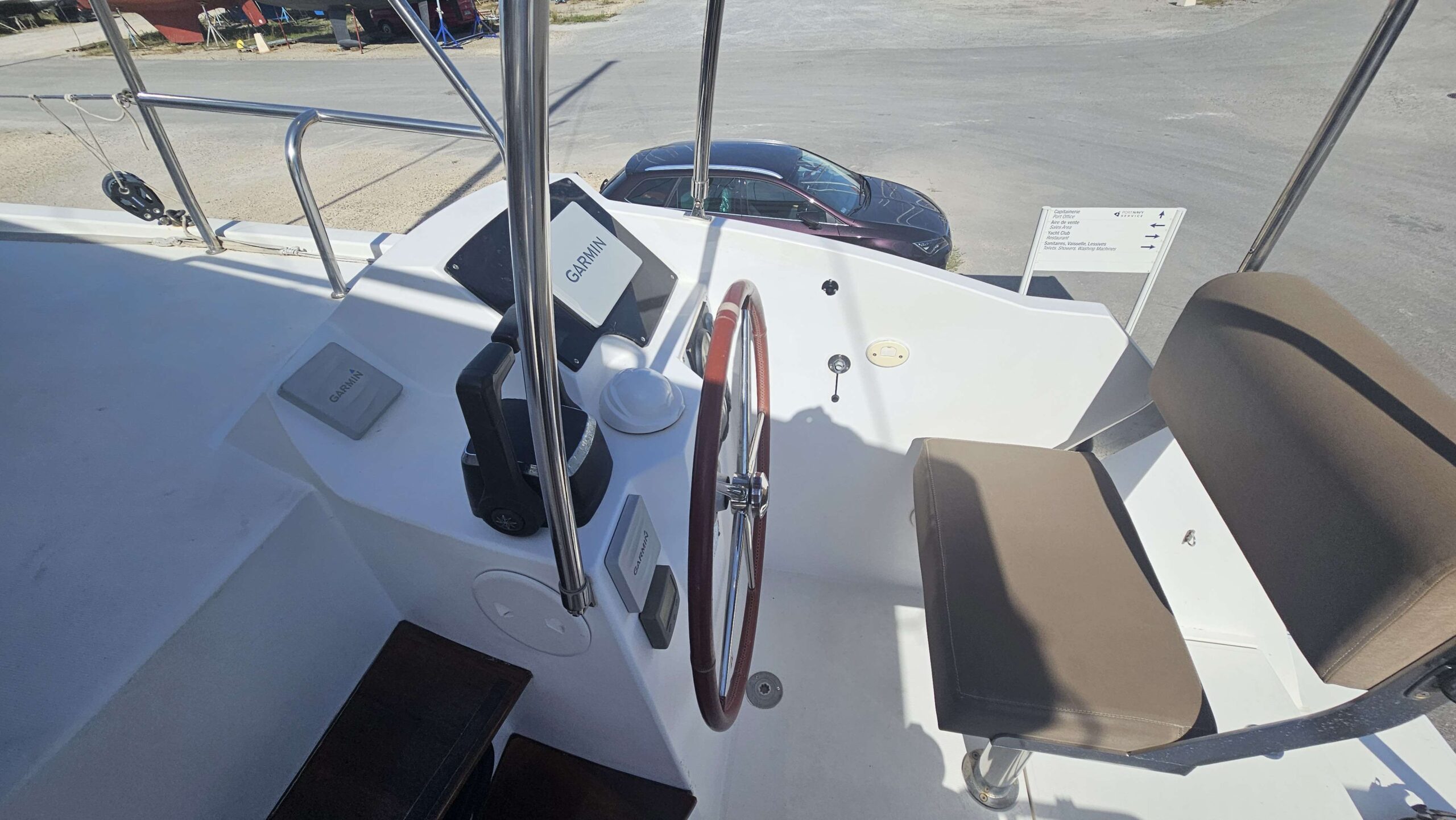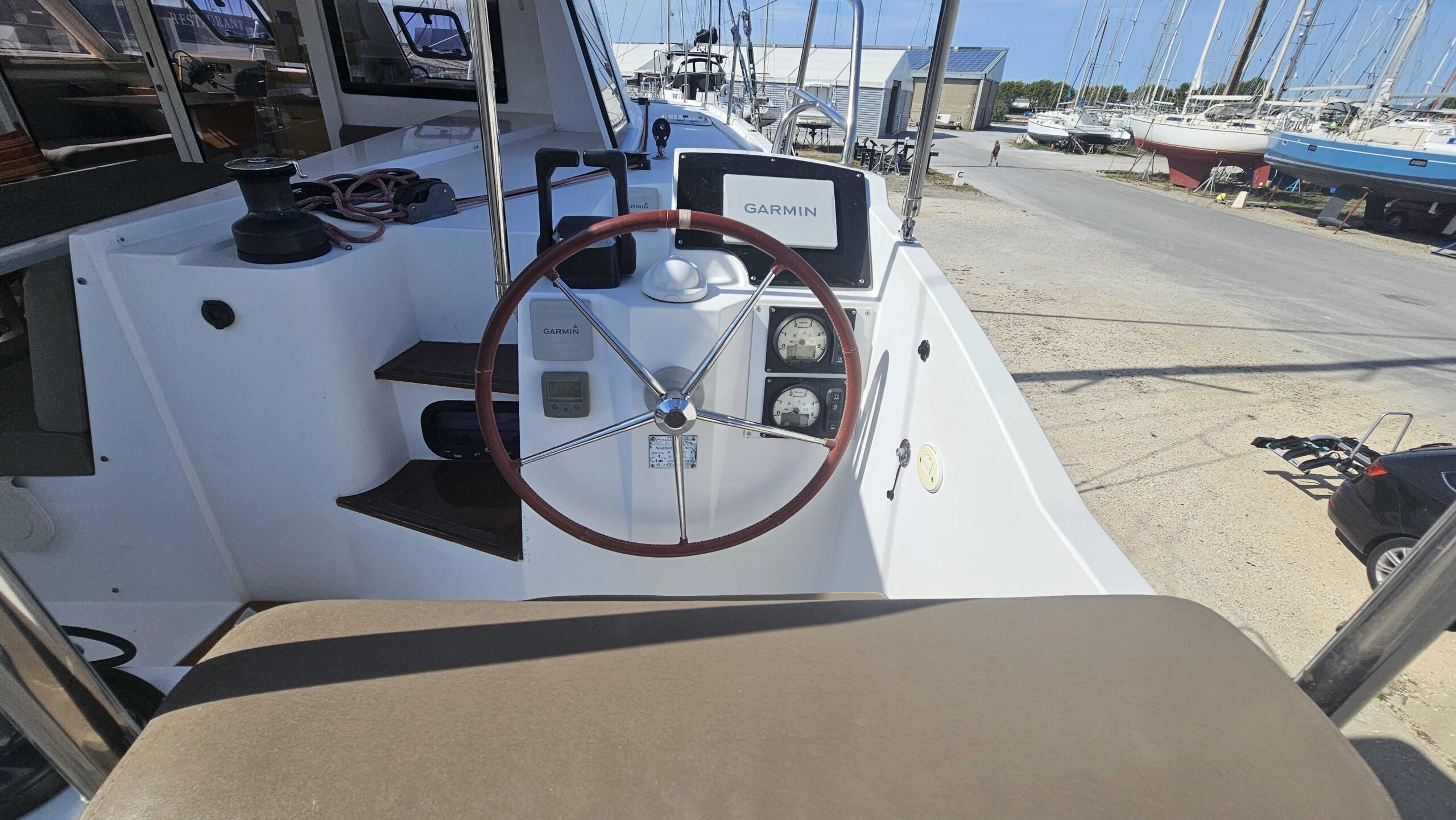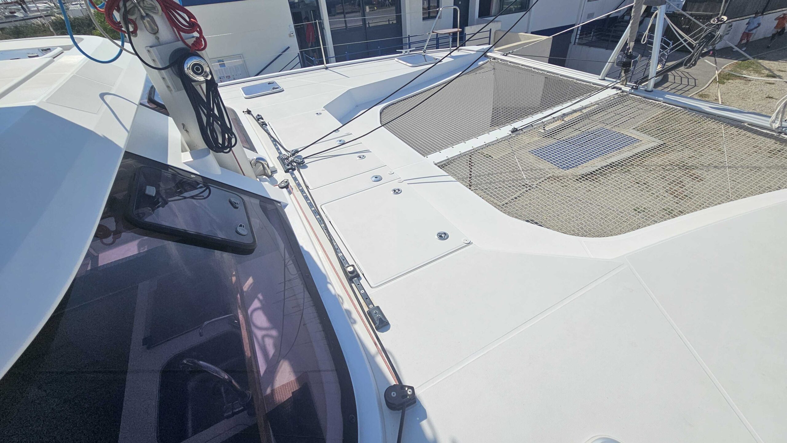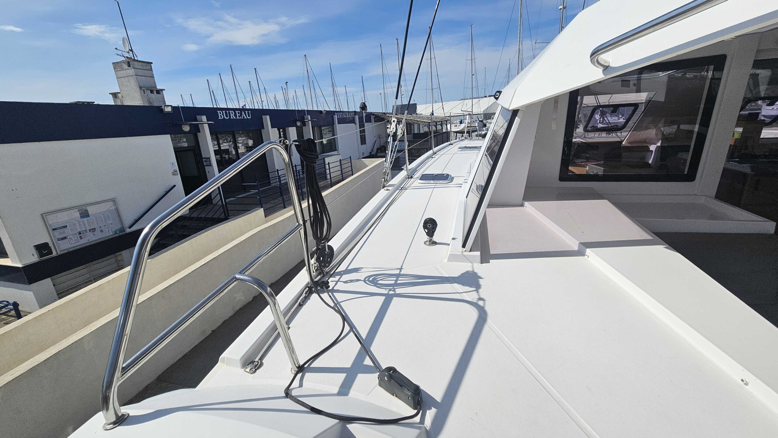 Rail d’écoute de grand voile Renvoi de drisse au cockpit Winch X4 Manivelle de winch Winch électrique X1 Bout dehors Barre franche de secours Barre à roue |
