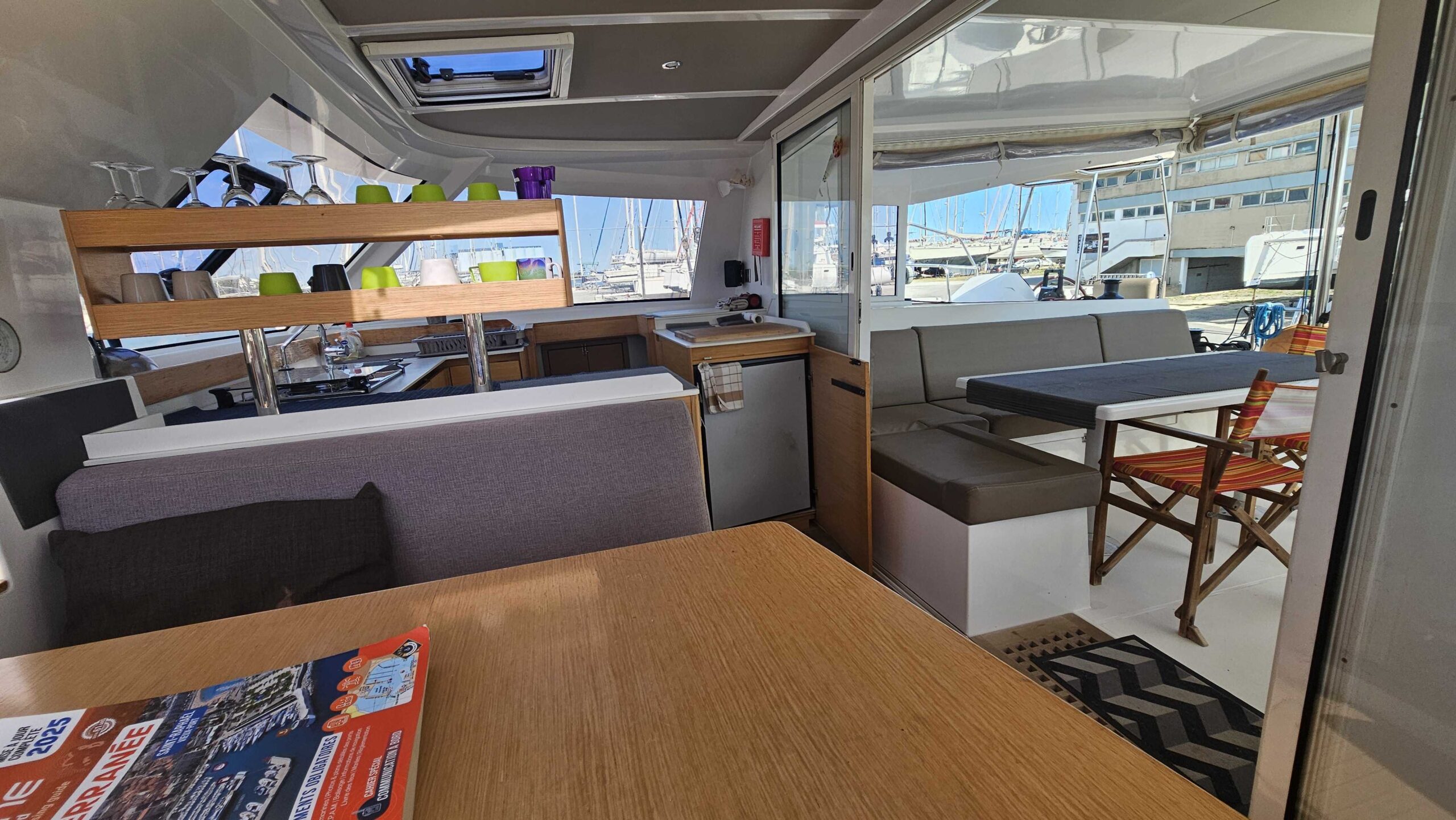 Plateforme de bain Echelle de bain Douchette de cockpit Table de cockpit Eclairage de cockpit Bain de soleil avant Coussins de cockpit Bimini top Taud de fermeture arrière |